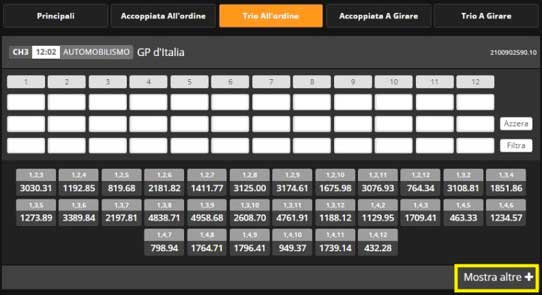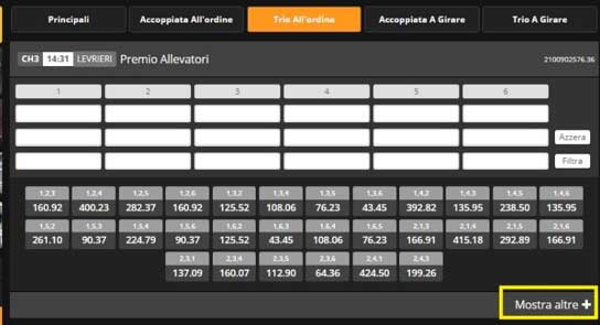 Oltre alle scommesse principali, è possibile piazzare la puntata su: Accoppiata all’ordine, Trio