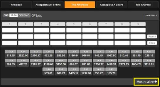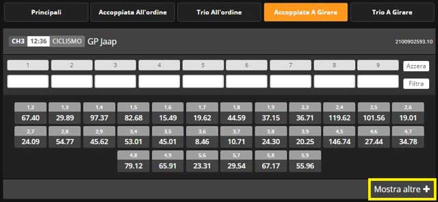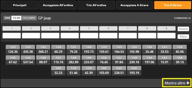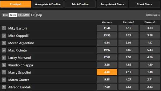 Individuato l’evento di ciclismo su cui scommettere, al centro della lobby si può selezionare l’esito