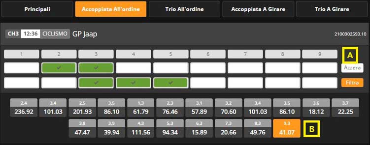 combinazioni visualizzate impostando i numeri di partenza dei corridori che ci interessano, se è in