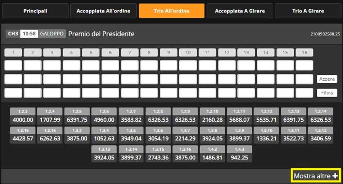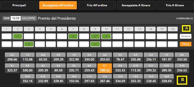 Nella parte centrale delle scommesse Accoppiata e Trio all’ordine o a girare è possibile ridurre il