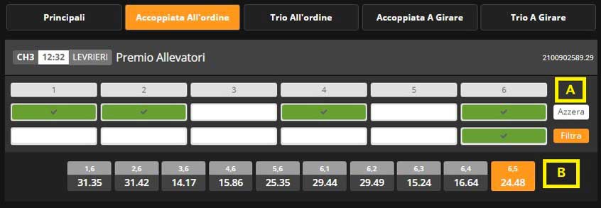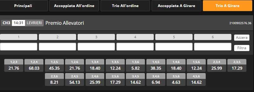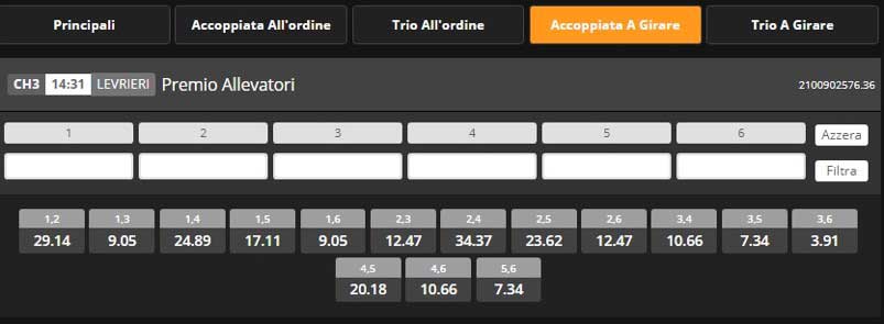 Individuato l’evento dei levrieri su cui scommettere, al centro della lobby si può selezionare